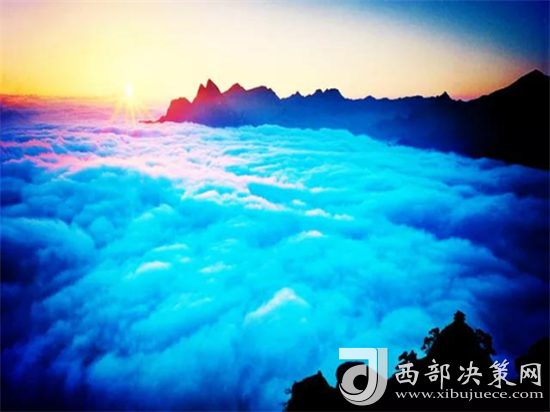 那白茫茫的云海千變萬化。有時,天空晴朗,山腰間浮著幾朵白云,像鳥兒在盤旋;有時,一帶云霧纏繞在峰嶺間,絲絲縷縷,如纖纖玉女般纏綿而多情;有時,山谷間被云霧填滿,僅露出一個山尖兒置身其間宛若在仙宮別苑;有時,云海茫茫,云波涌蕩,恍若隔世;有時,云霧包裹了山巒,人就在云中,移步生煙、吐納含瑞被云霧挾裹著,忘記了塵器的凡俗,忘記了世事的究雜,身心全都融化在了這超然的情境當中。