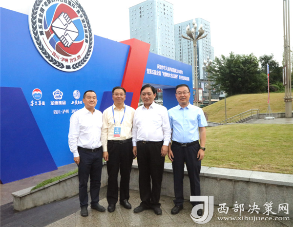 貴州茅臺酒廠(集團)有限責任公司黨委書記、董事長李保芳(左二)山西杏花村汾酒集團有限責任公司黨委書記、董事長李秋喜(右二)陜西西鳳酒廠集團有限公司黨委書記、董事長張正(右一)瀘州老窖股份有限公司黨委書記、董事長劉淼(左一)合影