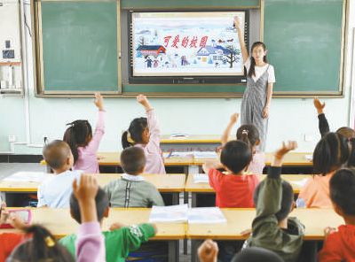 永寧縣原隆村原隆小學老師用電子屏給孩子們上課。攝于2019年9月。
