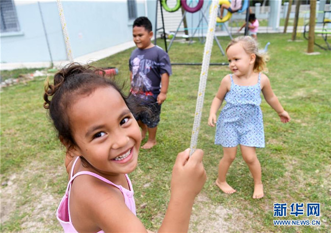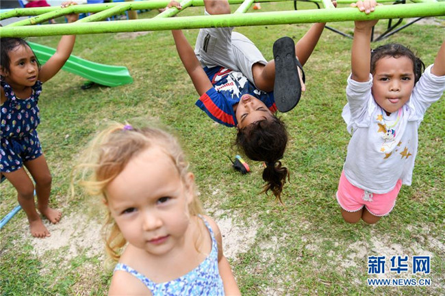 10月26日,在庫克群島首都阿瓦魯阿的阿皮尼考學校,幼兒園的孩子在操場上玩耍。