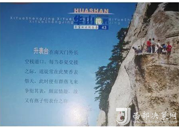 仰天池、洞里甕、全真崖、升表臺(tái),以上就是華山四大謎,帶大家游覽了一番,您覺得有更好的解釋嗎?如果有可以給我們留言,讓我們大家共同探索華山的未解之謎,用彩筆為華山之謎畫下最美的謎底吧?。ü└澹喝A旅集團(tuán)營銷中心)
