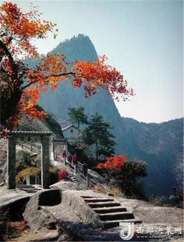 峰北臨白云峰,東近量掌山,上通東西南三峰,下接溝幢峽危道,峰頭是由幾組巨石拼接,渾然天成。絕頂處有平臺(tái),原建有倚云亭,現(xiàn)留有遺址,是南望華山三峰是蒼龍嶺的好地方。峰腰松樹常青,秀氣充盈,是攀登華山絕頂途中理想的休息場所。