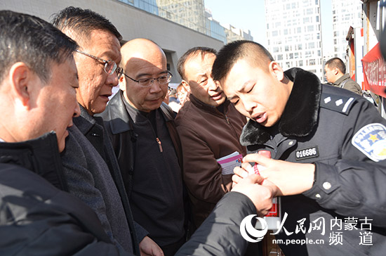 內蒙古市場監(jiān)督管理局局長白清元查看現(xiàn)場展示的假冒偽劣商品。