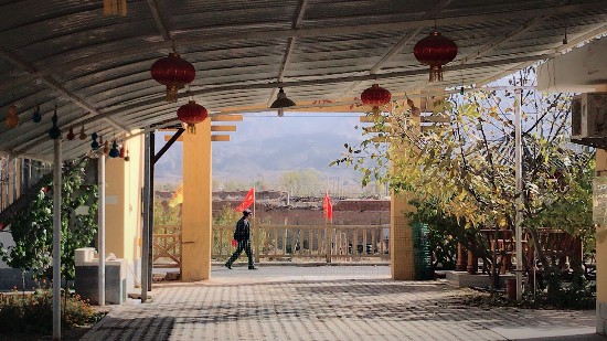 走進(jìn)沙坡頭新村童家園子,黃墻紅瓦的農(nóng)宅,干凈整潔的道路,各種果樹掩映中,一座座小院各有特色。因?yàn)樘鞖廪D(zhuǎn)涼,過了旅游季,大部分的農(nóng)家小院已經(jīng)歇業(yè),只有兩三家還在開門營(yíng)業(yè)。