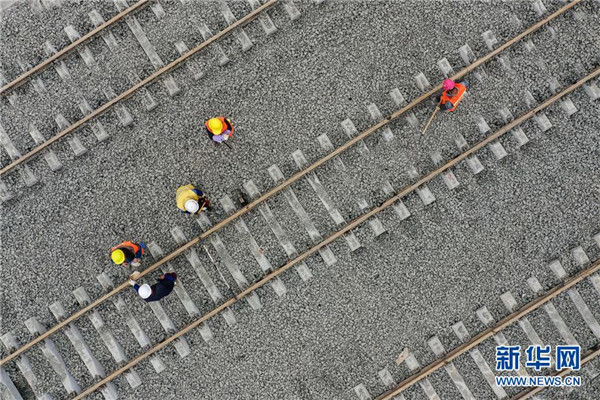 12月17日,中鐵八局建設(shè)者們在改貌鐵路口岸施工(無人機(jī)拍攝)。由中鐵八局承建的貴州省首個鐵路口岸——貴陽改貌鐵路口岸即將全面進(jìn)入竣工驗收階段。據(jù)悉,貴陽改貌鐵路口岸為一級開放口岸,建成投運(yùn)后將成為中歐班列的場站,年貨運(yùn)吞吐量將達(dá)120萬噸,將進(jìn)一步促進(jìn)貴州省對接“一帶一路”和“國際陸海貿(mào)易新通道”,為貴州建設(shè)內(nèi)陸開放型經(jīng)濟(jì)試驗區(qū)提供有力支撐。新華社記者劉續(xù)攝