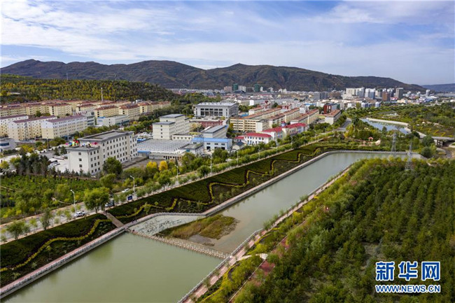 經(jīng)過綜合治理后的茹河成為寧夏固原市彭陽縣的一道新風景(10月12日無人機拍攝)。 新華社記者 馮開華 攝