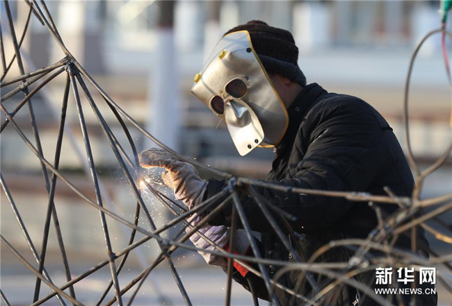 新年臨近,在寧夏銀川花博園內(nèi)工作人員正抓緊制作大型花燈,為即將舉辦的迎春燈會(huì)做準(zhǔn)備。據(jù)了解,此次迎春燈會(huì)將于2019年12月31日至2020年2月9日在銀川花博園舉辦,包括大型燈會(huì)、焰火表演、非遺展示等系列活動(dòng)。