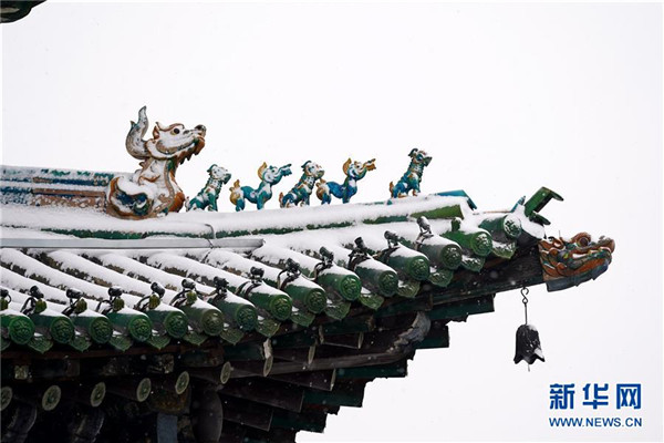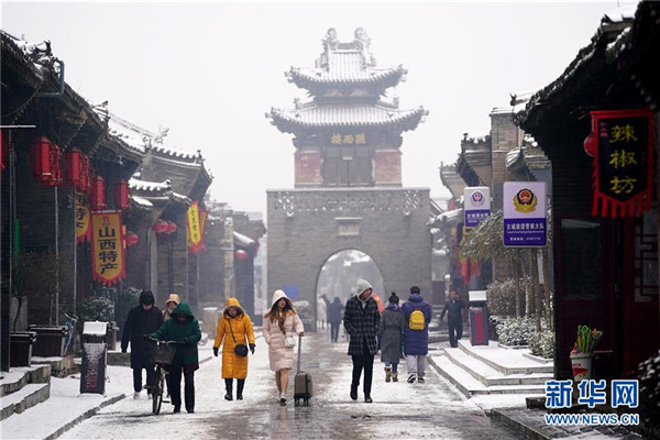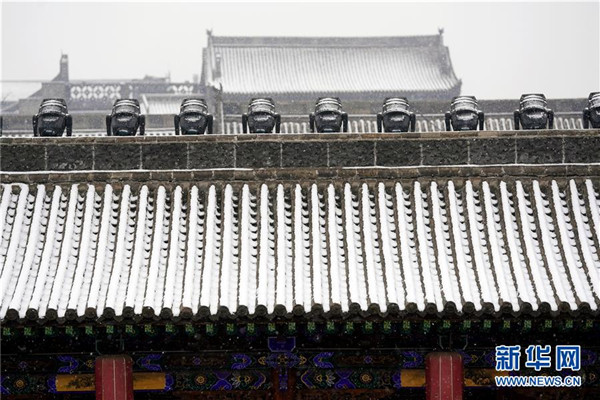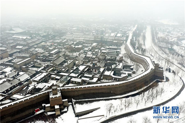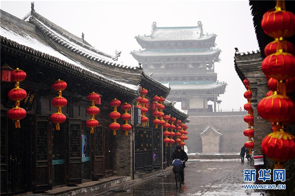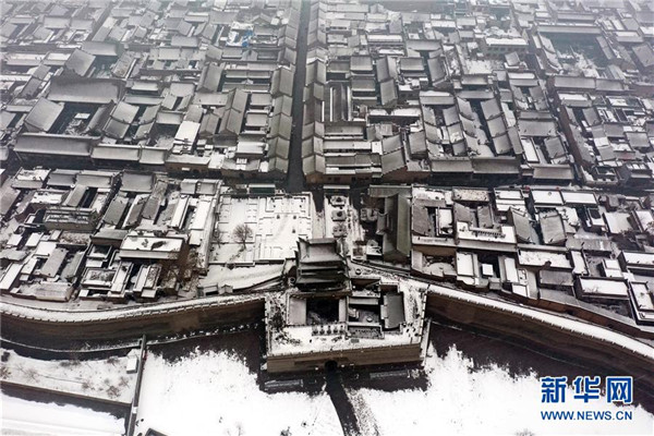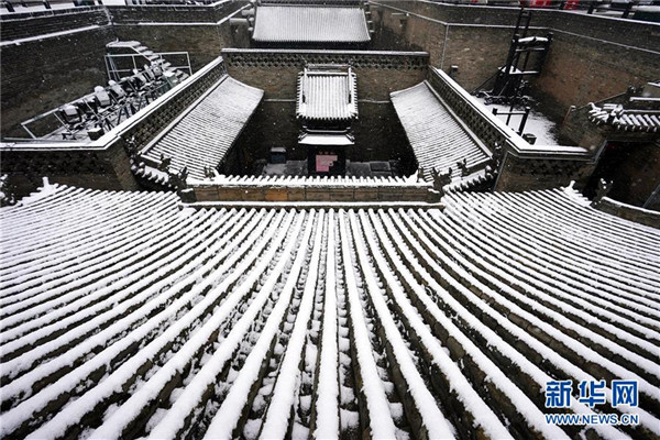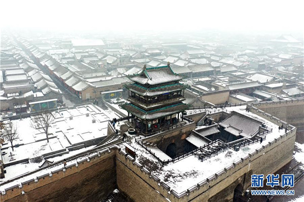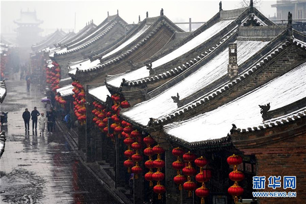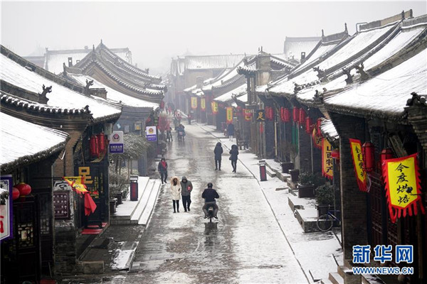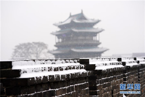 當日,山西省平遙縣迎來降雪,雪中的平遙古城銀裝素裹,美景如畫。平遙古城是目前中國保存最完整的古代縣級城池之一,1997年被列入世界文化遺產名錄。新華社記者詹彥攝