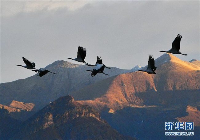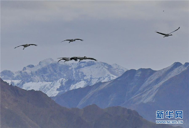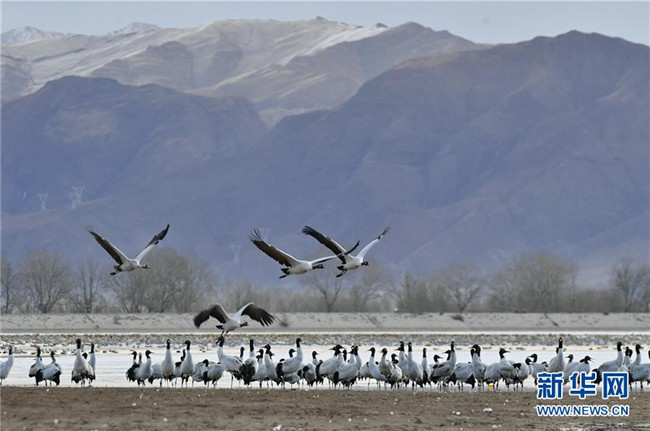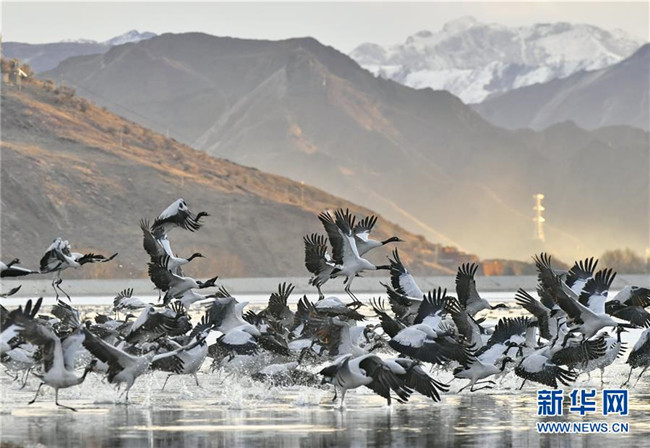 冬季,大批黑頸鶴來到西藏拉薩市達(dá)孜區(qū)和林周縣棲息、覓食。天地間鶴舞翩翩,賞心悅目。