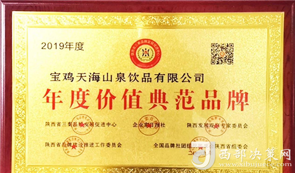 “年度價值典范品牌”榮譽(yù)由陜西省三秦品牌發(fā)展促進(jìn)中心、企業(yè)家日報社、陜西發(fā)展觀察專家委員會、陜西省品牌建設(shè)推進(jìn)工作委員會、全國品牌社團(tuán)組織聯(lián)席會陜西省組委會等單位聯(lián)合評審頒發(fā)。此次太極之源礦泉水品牌生產(chǎn)灌裝基地、“中國富硒食品產(chǎn)業(yè)化基地”——寶雞天海山泉飲品有限公司獲得此項榮譽(yù),可以說是對太極之源品牌價值的高度認(rèn)可和肯定!