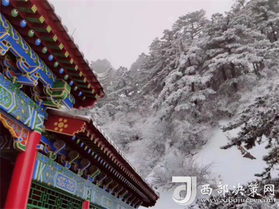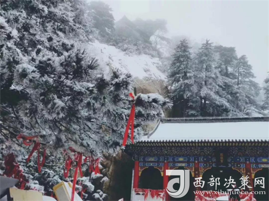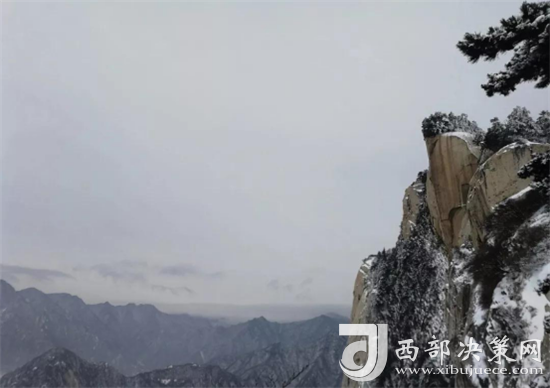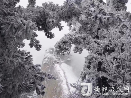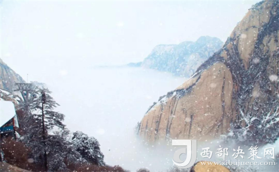 白雪與蒼翠的華山奇松、靈動的云海交相輝映,