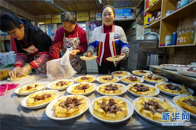 1月18日,中山古鎮(zhèn)的一戶商家在“千米長宴”開席前準備菜品。當日中午,伴隨著一聲“開席嘍”,一年一度的“千米長宴”在重慶市江津區(qū)中山古鎮(zhèn)舉行。噴香的煙熏豆腐、軟糯的夾燒肉、可口的石板糍粑……800余桌年味十足的特色美食,吸引了兩萬多名游客前來體驗傳統(tǒng)民俗,感受“一雙筷子吃遍一條街”的暢快淋漓。中山古鎮(zhèn)自古就有“千米匯長宴萬人祈福祉”的習俗。每年春節(jié)期間,古鎮(zhèn)老街居民都會在千米長街上大擺“百家宴”,祝福生意興隆、家業(yè)興旺、風調雨順、五谷豐登。新華社記者劉潺攝