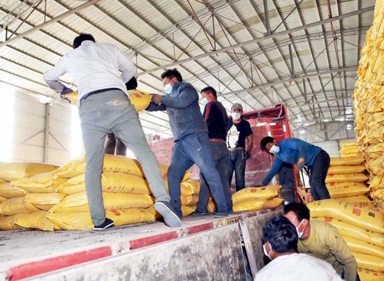 西藏農(nóng)投集團(tuán)化肥倉庫現(xiàn)有庫存2萬多噸化肥,工人們正在忙碌搬運。西藏日報記者 姚海全 攝