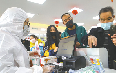 疫情期間,人們對自己的健康狀況更加關(guān)注。圖為在山東省臨沂市沂蒙路一家醫(yī)藥零售連鎖店內(nèi),消費者正在購買防護(hù)口罩和酒精消毒液。人民視覺