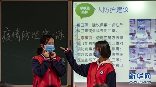 3月23日,昆明市第一中學(xué)高三年級(jí)學(xué)生在教室里上疫情防控第一課。新華社記者 江文耀 攝