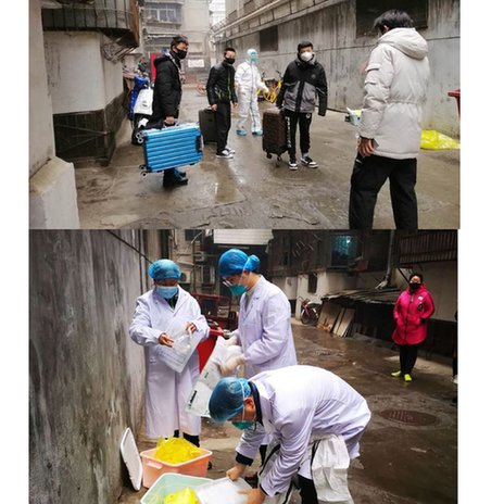 流調(diào)消毒密接轉(zhuǎn)運(yùn)認(rèn)真負(fù)責(zé):疫情緊迫,大年三十就全身心加入到新冠疫情防控當(dāng)班和流調(diào)準(zhǔn)備工作之中。大年初一早上,就和同組人員開始對(duì)一餐飲店的密切接觸者進(jìn)行流調(diào),對(duì)餐飲店和密接者住所進(jìn)行終末消毒,并將該店密接者送至隔離醫(yī)院的感染隔離區(qū);又馬不停蹄地投入到下一波的流調(diào)、消毒任務(wù)之中。一整天周而復(fù)始的處置疫情,等將這一天最后兩位密切接觸者送至醫(yī)院隔離病區(qū)后,已是大年初一的深夜了。帶著一身疲憊,在醫(yī)院大門外消毒并一層一層脫去隔離服時(shí),大家才感受到西安新年夜晚是如此寂靜,難以忘懷……。