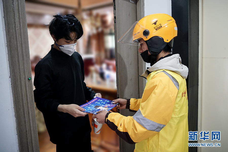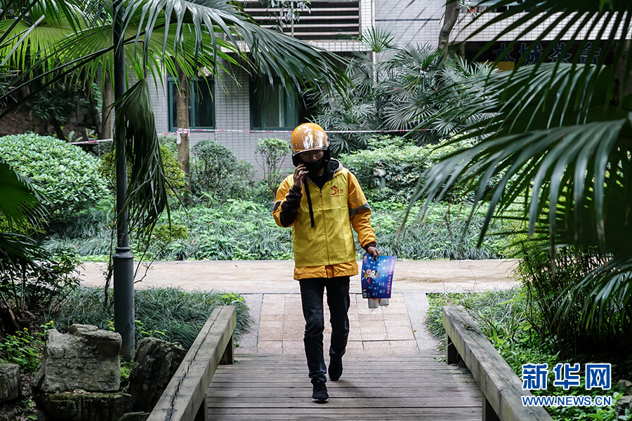 到達送餐的小區(qū)后,王淞迅速跟對方取得聯(lián)系,上門進行配送。據(jù)沙坪壩區(qū)委政法委相關負責人介紹,通過快遞和外賣配送業(yè)務來發(fā)送宣傳制品,是為了讓宣傳教育活動由人員聚集到分散入戶,變集中宣傳為流動宣傳,同時不降低疫情期間群眾參與度。新華網(wǎng) 韓夢霖 攝