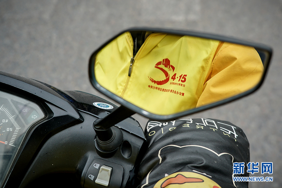 王淞騎著摩托車出發(fā)了,前往配送的小區(qū)距離不遠,熟悉道路情況的他幾分鐘就可以駕車到達。“我是國家安全宣傳使者”活動從4月13日起持續(xù)三天,預計將把上萬份宣傳品送到商家和市民手中。新華網(wǎng) 韓夢霖 攝