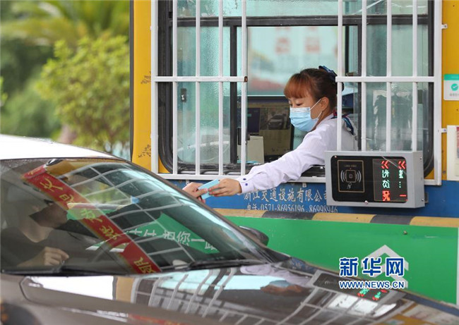 5月6日,貴州省銅仁市玉屏侗族自治縣滬昆高速玉屏收費(fèi)站的收費(fèi)員在收取過(guò)往車(chē)輛過(guò)路費(fèi)。 交通運(yùn)輸部4月28日發(fā)布關(guān)于恢復(fù)收費(fèi)公路收費(fèi)的公告,經(jīng)國(guó)務(wù)院同意,自2020年5月6日零時(shí)起,經(jīng)依法批準(zhǔn)的收費(fèi)公路恢復(fù)收費(fèi)(含收費(fèi)橋梁和隧道)。 新華社發(fā)(胡攀學(xué) 攝)