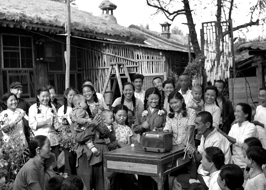 1954年9月15日至28日,第一屆全國人民代表大會第一次會議在北京召開。圖為北京郊區(qū)農(nóng)民收聽會議實況轉播的情形。