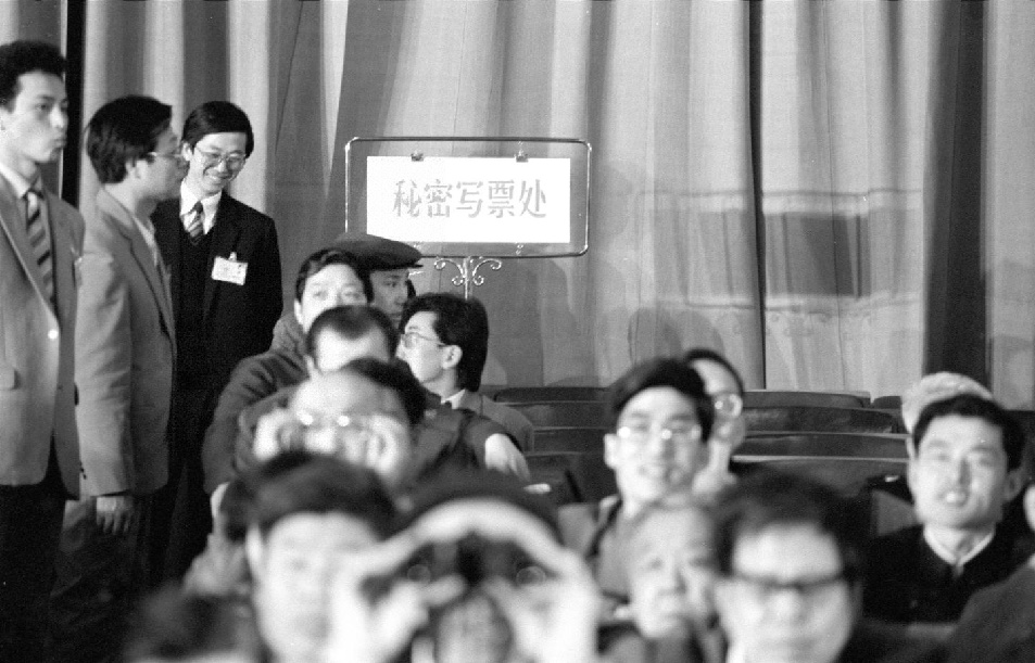 1988年4月,七屆全國人大一次會議第六次全體會議,投票選舉國家機構領導人。圖為首次設立的秘密寫票處。