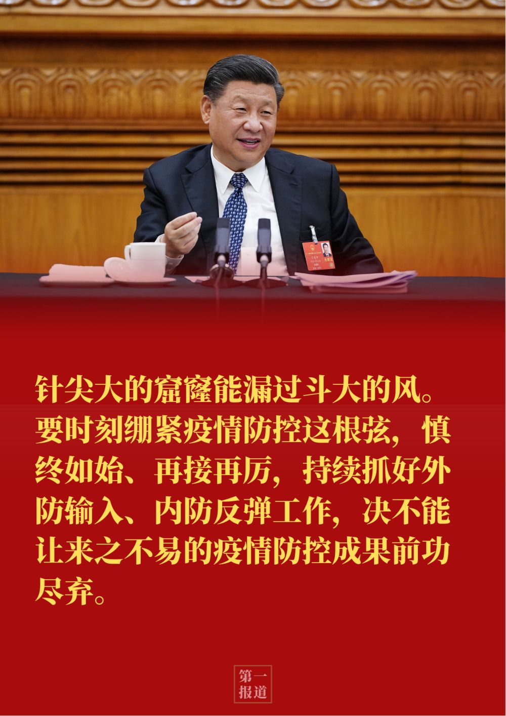習(xí)近平指出:“針尖大的窟窿能漏過斗大的風(fēng)。要時刻繃緊疫情防控這根弦,慎終如始、再接再厲,持續(xù)抓好外防輸入、內(nèi)防反彈工作,決不能讓來之不易的疫情防控成果前功盡棄。”