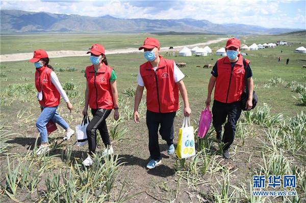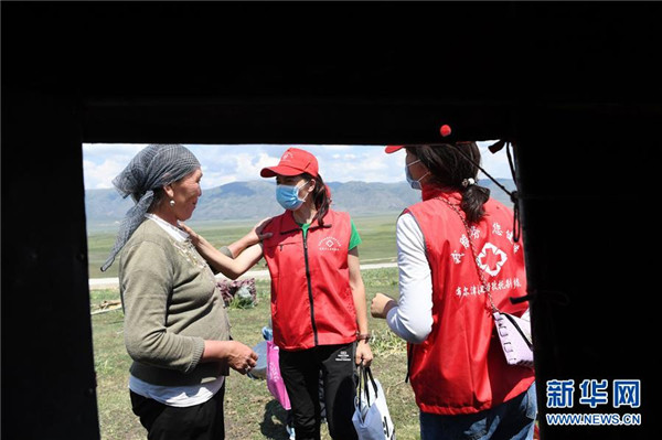 6月20日,新疆阿勒泰地區(qū)布爾津縣也格孜托別鄉(xiāng)克孜勒托蓋村家庭醫(yī)生簽約團隊成員在布爾津縣黑流灘草原進行隨訪服務(wù)。圍繞實現(xiàn)人人享有基本醫(yī)療衛(wèi)生服務(wù)目標,2016年起,新疆布爾津縣開展家庭醫(yī)生簽約服務(wù)工作。該縣組建家庭醫(yī)生簽約團隊65個,團隊醫(yī)務(wù)人員233名,通過手機APP、基本公衛(wèi)系統(tǒng)與全縣建檔立卡貧困戶進行電子化簽約,提升村醫(yī)隨訪的工作效率和質(zhì)量。截至目前,已完成簽約42936人,履約40043人。新華社記者沙達提攝