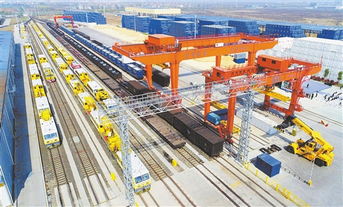 湖北襄陽(yáng)自貿(mào)片區(qū)內(nèi)襄北編組站發(fā)出貨運(yùn)班列。 (資料圖片)