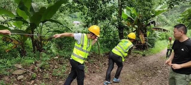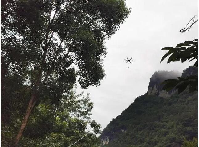 由于光纜恢復(fù)區(qū)域地勢險峻,搶修難度大,搶修人員結(jié)合現(xiàn)場實際情況后決定采用無人機牽引技術(shù)布放光纜,這樣省時、省力又安全!