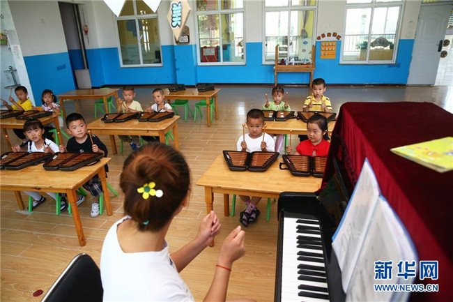 7月22日,學生在石嘴山市大武口區(qū)青少年學生校外活動中心音樂教室內(nèi)學習鐘琴。新華社記者 賈浩成 攝