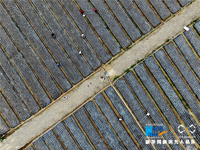 甘肅省宕昌縣好梯鄉(xiāng)地處林緣地帶,氣候溫暖潮濕,非常適宜菌類生長(zhǎng)。在好梯鄉(xiāng)麻子溝扶貧產(chǎn)業(yè)園中黑木耳長(zhǎng)勢(shì)喜人,一排排整齊排列的菌棒構(gòu)成一幅美麗畫(huà)卷。目前,第一批耕地種植黑木耳6萬(wàn)袋,年產(chǎn)黑木耳3噸,第二批擬在今年9月份新建鋼架大棚24個(gè),吊袋種植黑木耳21萬(wàn)袋,年產(chǎn)黑木耳10.5萬(wàn)噸。新華網(wǎng)發(fā)(劉輝 攝)