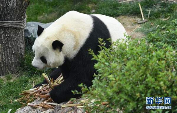 8月16日,大熊貓“雙欣”在西寧熊貓館內(nèi)吃竹子。青海省西寧熊貓館的四只大熊貓已經(jīng)在西寧生活了一年多,在工作人員的悉心照顧下,已經(jīng)適應(yīng)了青藏高原的氣候,身體各項(xiàng)指標(biāo)正常。新華社記者薛玉斌攝