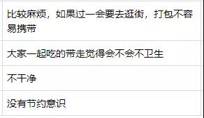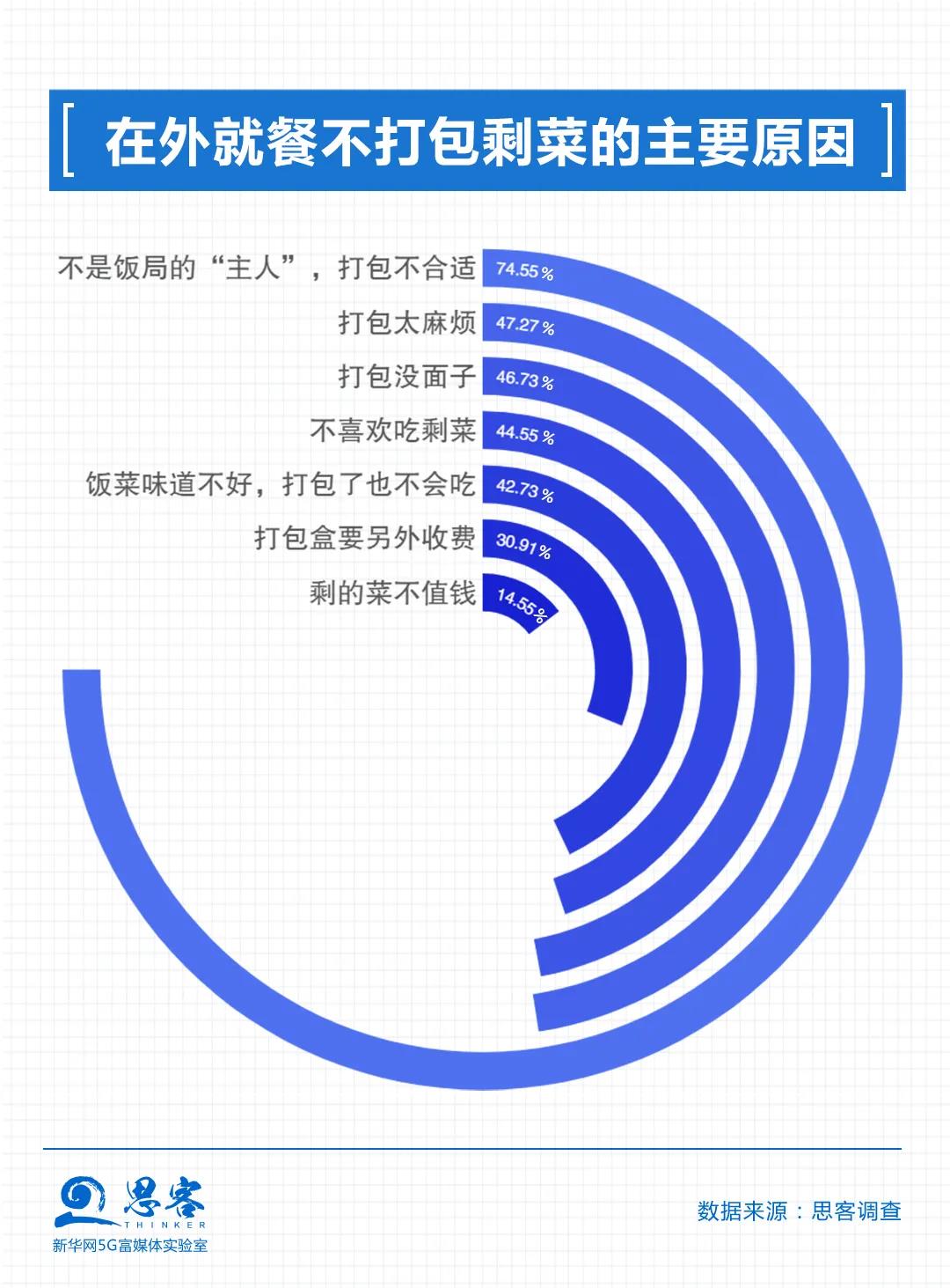 打包不合適、太麻煩、沒面子,這些是受訪者認(rèn)為在外就餐不愿打包剩菜的主要原因。“我不是宴會(huì)的主辦者,我打包不合適,好像我占便宜似的”“同桌的人一起夾過的菜,打包不衛(wèi)生”“穿著西裝打著領(lǐng)帶,手上拿著打包盒很奇怪”“中午食堂的剩菜又沒有打包盒裝,下午又沒地方放,沒人會(huì)打包帶走”,這樣的受訪者留言在后臺(tái)還有不少。