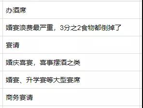 在調(diào)查問卷的后臺(tái)留言中,不少受訪者留言說,同學(xué)會(huì)、紅白宴、生日宴、升學(xué)宴、商務(wù)宴請(qǐng)等浪費(fèi)量較高,甚至有人說“三分之二的食物都倒掉了”。