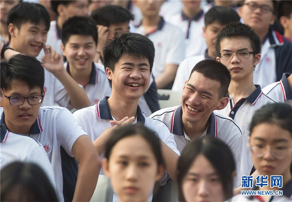 這是武漢中學的學生在開學典禮前(9月1日攝)。9月1日,武漢市2842所中小學、幼兒園迎來開學,涉及學生139.9萬人,百萬學子重返校園。新華社記者肖藝九攝