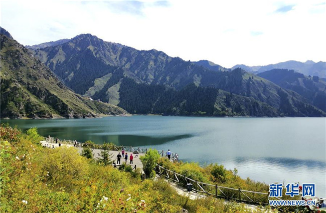 9月2日,游客在天山天池景區(qū)觀光。新華社發(fā)(段如麗 攝)