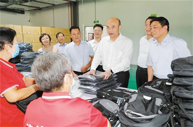 9月2日,省委書記劉國(guó)中到咸陽市、銅川市調(diào)研脫貧攻堅(jiān)。圖為他在銅川市印臺(tái)區(qū)順金社區(qū)詢問社區(qū)工廠貧困戶收入情況。記者 張辰攝