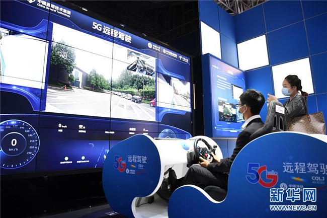9月15日,工作人員在2020線上智博會(huì)上演示“5G遠(yuǎn)程駕駛技術(shù)”。 新華社記者 唐奕 攝