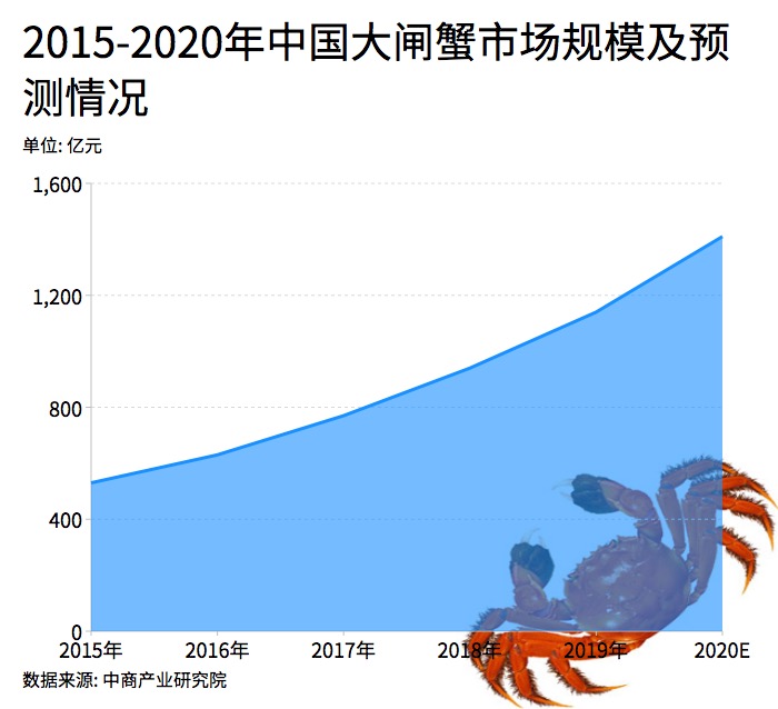 大閘蟹又被稱為中華絨螯蟹,分布在我國北起遼河南至珠江,其中以長江水系產(chǎn)量最大。近年來隨著消費者對大閘蟹的喜愛程度的提高,其市場需求不斷增長。據(jù)相關(guān)數(shù)據(jù)統(tǒng)計2018年大閘蟹產(chǎn)量高達(dá)80萬噸左右,產(chǎn)業(yè)規(guī)模2019年突破億元,年增速約20%。據(jù)預(yù)測,到2020年我國大閘蟹市場規(guī)?;蚪咏?500億元。