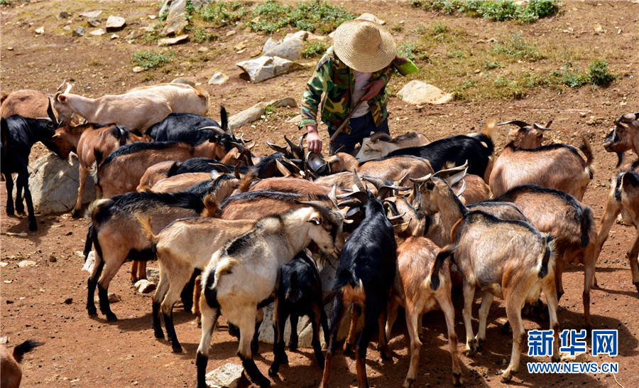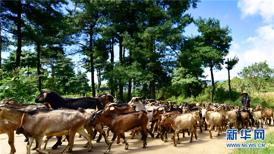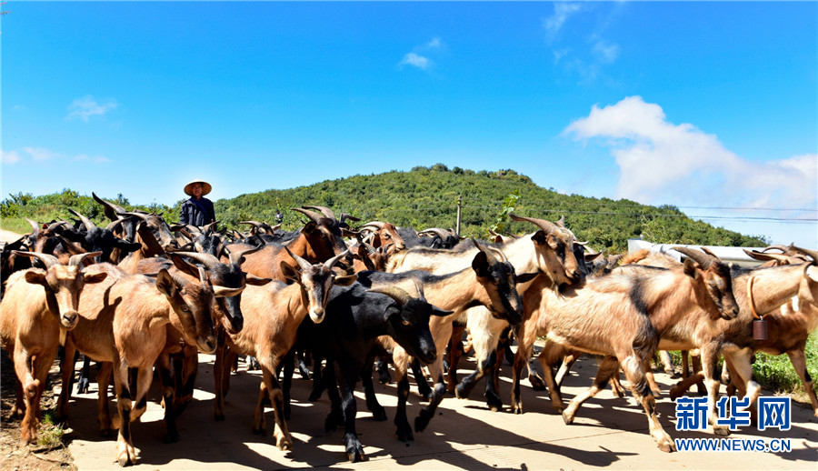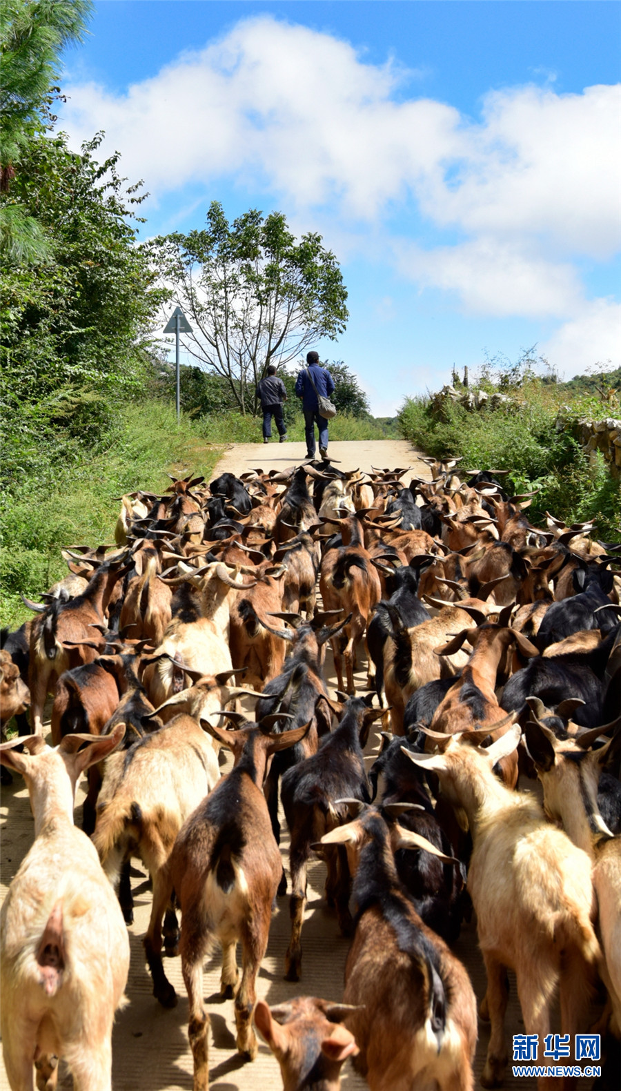 在云南省彌勒市東山鎮(zhèn)舍母村委會(huì)小橫山村,當(dāng)?shù)乩蒙鷳B(tài)草場(chǎng)優(yōu)勢(shì)大力發(fā)展生態(tài)羊養(yǎng)殖,戶均養(yǎng)殖100多只,成為村民們的致富新手段。(10月11日攝)。新華網(wǎng)發(fā)(普佳勇 攝)