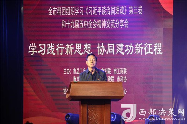 西部決策網(wǎng)訊 為深入貫徹習(xí)近平新時代中國特色社會主義思想,學(xué)習(xí)宣傳貫徹《習(xí)近平談治國理政》第三卷、黨的十九屆五中全會精神,加快群團協(xié)同化建設(shè)進程,11月5日,西寧市總工會牽頭召開市級群團組織“學(xué)習(xí)踐行新思想  協(xié)同建功新征程”為主題的學(xué)習(xí)《習(xí)近平談治國理政》第三卷和黨的十九屆五中全會精神交流分享會,市委常委、宣傳部部長、市總工會主席王霞出席會議并講話。全市各群團組織負責(zé)同志、勞模代表和干部職工群眾共300余人參加活動。