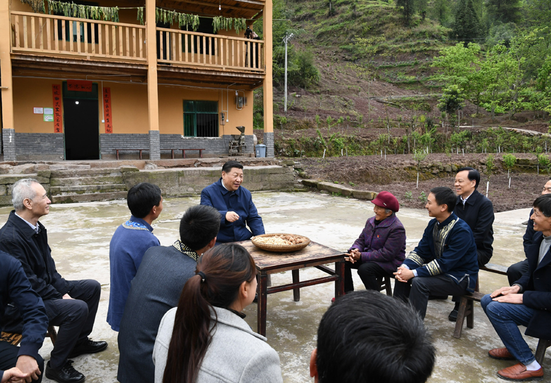 2019年4月15日,習近平在重慶市石柱土家族自治縣中益鄉(xiāng)華溪村同村民座談。