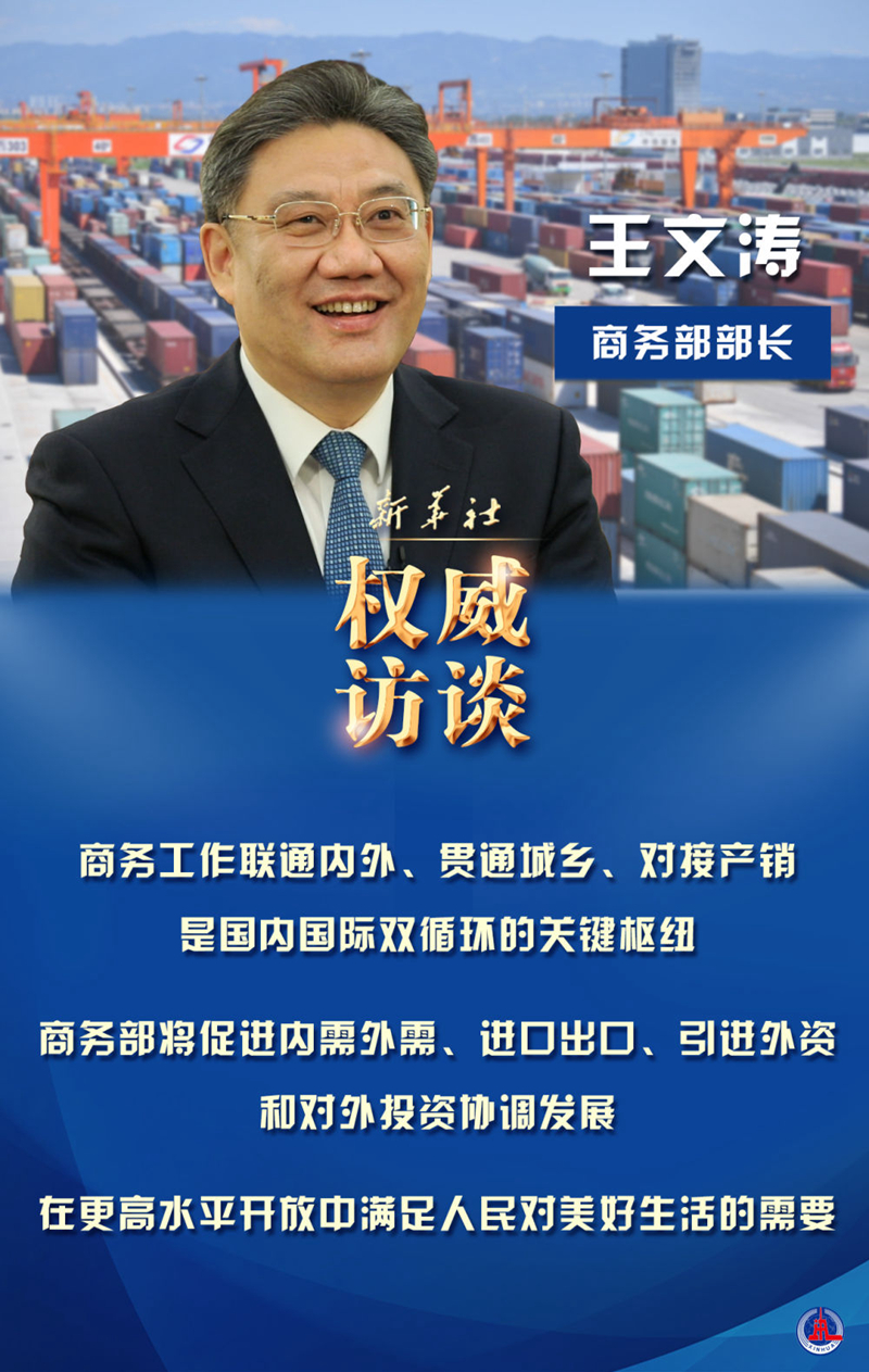“商務部一頭連著國內大循環(huán),一頭連著國際大循環(huán),在國內大循環(huán)和國際大循環(huán)聯(lián)動中商務部能發(fā)揮重要作用。”王文濤說。