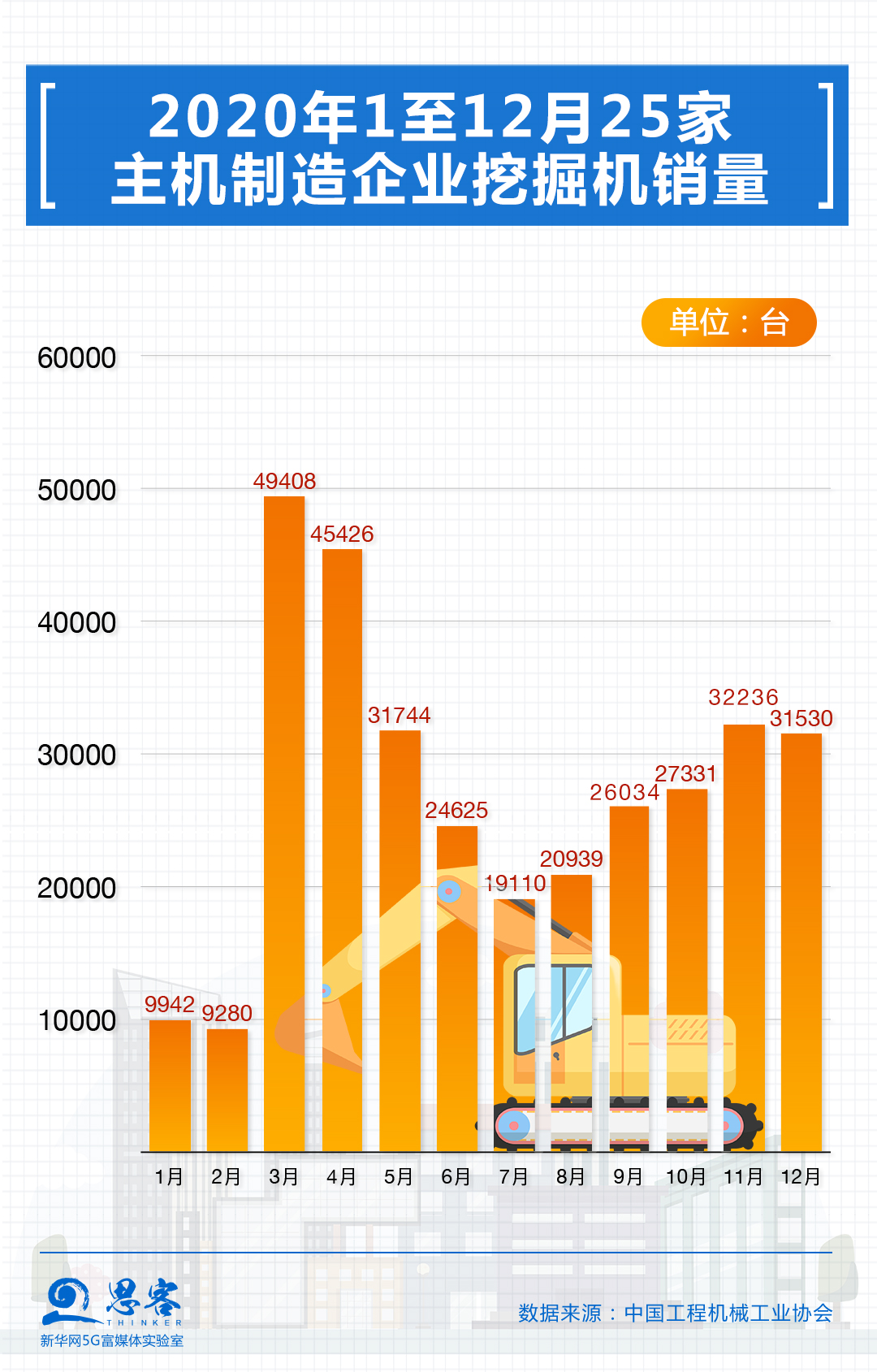 挖掘機銷量素有中國經濟“溫度計”之稱。據中國工程機械工業(yè)協(xié)會統(tǒng)計,2020年12月納入統(tǒng)計的25家挖掘機制造企業(yè)共銷售各類挖掘機31530臺,同比增長56.4%;全年共銷售挖掘機327605臺,同比增長39%。從百萬億里程碑和挖掘機銷量增長的背后,我們看到了怎樣的中國經濟活力與圖景?