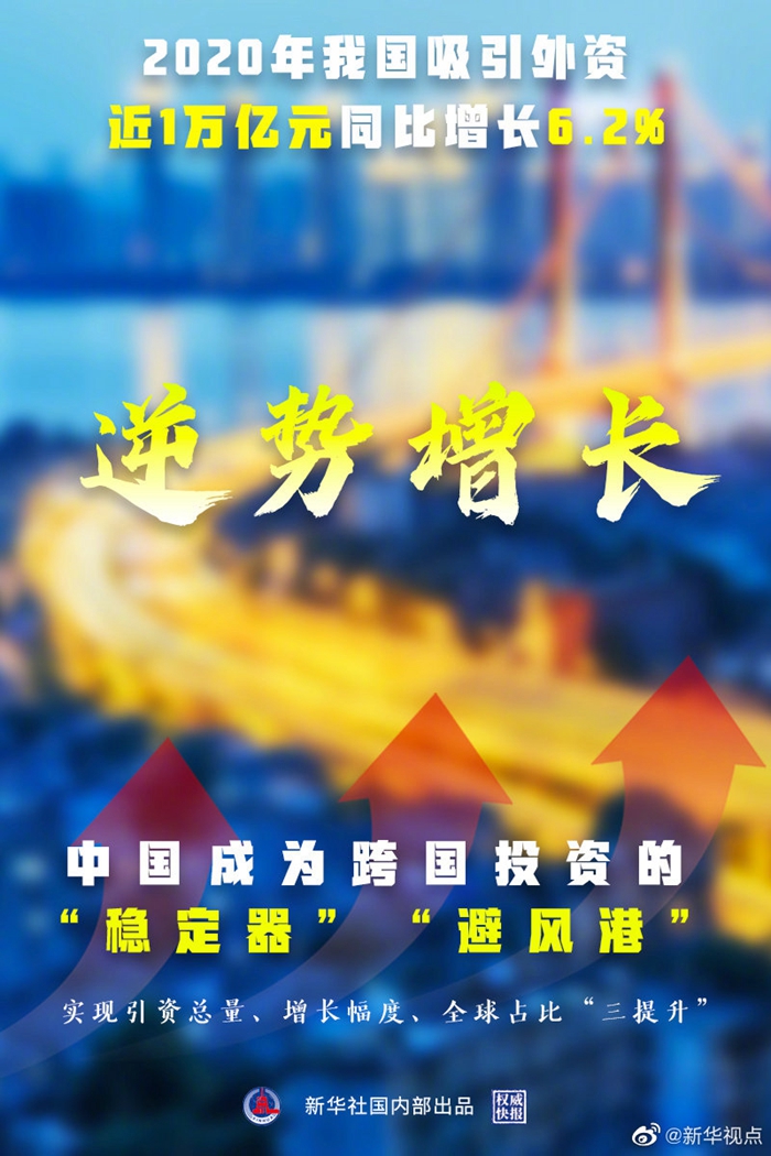 原標(biāo)題:權(quán)威快報(bào)|逆勢(shì)創(chuàng)新高!2020我國(guó)吸收外資近1萬(wàn)億元,同比增長(zhǎng)6.2%