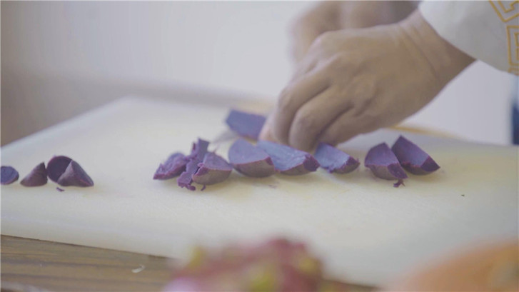 把準(zhǔn)備好的蔬果洗凈切塊備用。