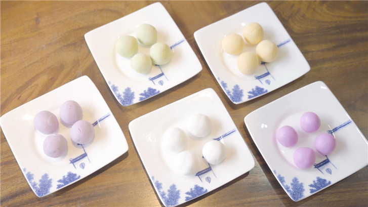 把榨好的蔬果汁與糯米粉和面團(tuán)。