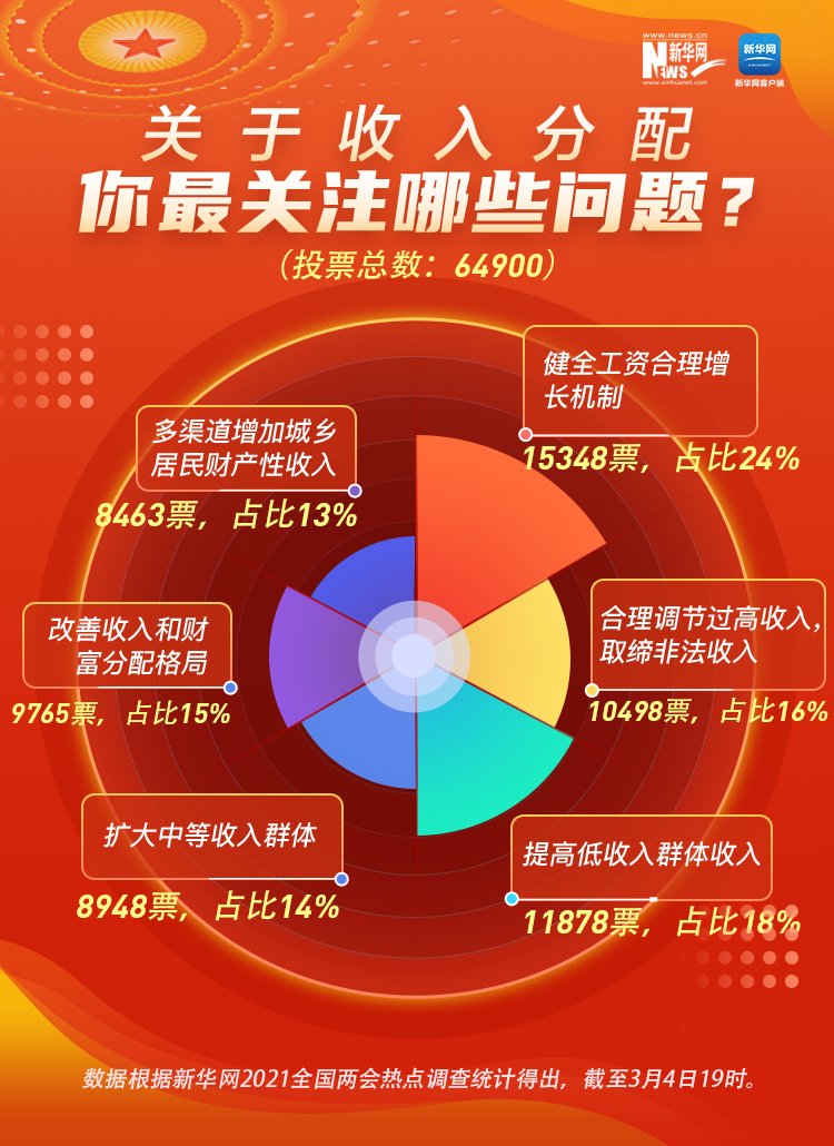 民之所望,政之所向。全國(guó)政協(xié)十三屆四次會(huì)議3月4日在北京開幕,2021年全國(guó)兩會(huì)正式開啟。今年你最關(guān)心什么事?在新華網(wǎng)前期推出的2021全國(guó)兩會(huì)熱點(diǎn)調(diào)查中,收入分配、鄉(xiāng)村振興、“十四五”規(guī)劃、疫情防控、就業(yè)創(chuàng)業(yè)、養(yǎng)老保障等成為網(wǎng)民關(guān)注的熱點(diǎn)話題。