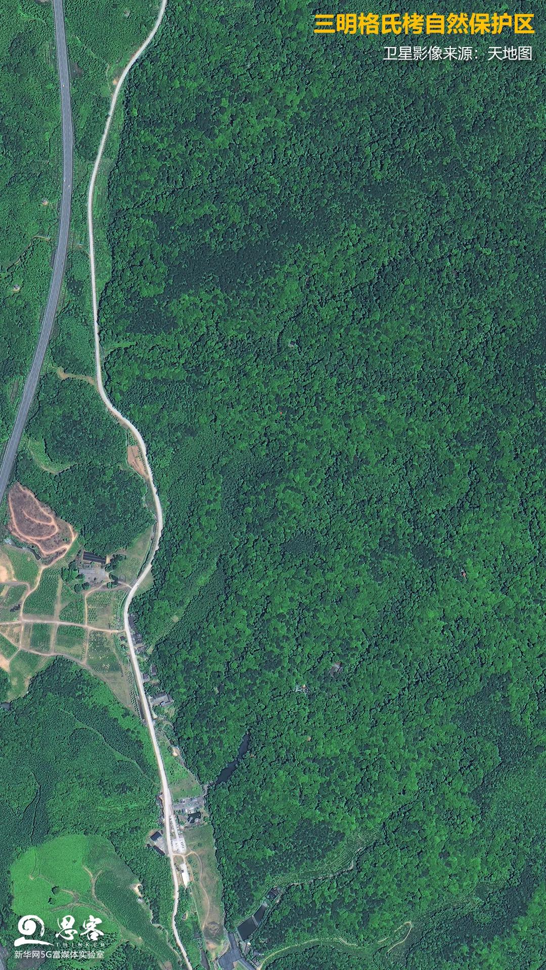 ▲三明格氏栲自然保護(hù)區(qū)。衛(wèi)星影像來(lái)源:天地圖