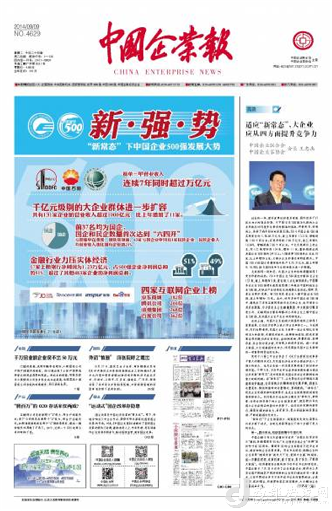《中國企業(yè)報》是由中國企業(yè)聯(lián)合會、中國企業(yè)家協(xié)會主管主辦,是中國唯一以企業(yè)和企業(yè)家為報道核心的中央級媒體?!吨袊髽I(yè)報》是一張專為中國企業(yè)創(chuàng)辦的報紙。1988年1月4日,由國家經(jīng)委主辦,中國企業(yè)管理協(xié)會承辦的《中國企業(yè)報》正式創(chuàng)刊。陳云同志為報紙題寫了報頭,鄧力群任報社名譽(yù)顧問,袁寶華任報社名譽(yù)社長。從1988年創(chuàng)辦至今,秉承“面向企業(yè),為企業(yè)服務(wù)”的辦報宗旨,親歷和記錄著中國企業(yè)的改革進(jìn)程,同時伴隨著中國企業(yè)的發(fā)展壯大而不斷成長。經(jīng)過20多年的實(shí)踐探索,在報道企業(yè)新聞、推動企業(yè)改革、維護(hù)企業(yè)權(quán)益、促進(jìn)企業(yè)發(fā)展等方面,逐步形成了自身的風(fēng)格和特色,專業(yè)性、權(quán)威性日益得到了企業(yè)界和新聞界的認(rèn)同。
